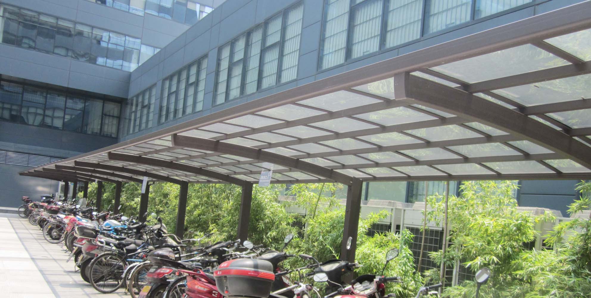 自行車棚作為城市公交設(shè)施綠色出行的一部分,是市民停放自行車的固定場所,自行車棚的建設(shè)單位打造城市低碳交通,為了還城市一個(gè)健康清新的環(huán)境,市民要加強(qiáng)意識(shí),從而達(dá)到減少低碳元素類,特別是二氧化碳的排放量,從而減少對(duì)大氣的污染,減緩生態(tài)惡化,市政府應(yīng)設(shè)立自行車棚,為市民能實(shí)現(xiàn)綠色低碳環(huán)保的環(huán)境提供場所。鋁合金自行車棚是目前備受歡迎的車棚類型,在國外已逐漸應(yīng)用于體別墅小區(qū),企業(yè)工廠,政府單位等建筑中。