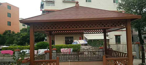 近些年來,鋁制涼亭受到了很多人的青睞,因為鋁制涼亭材質硬不易老化,后期基本不用維護,其外觀經過木紋處理轉印后,質地顏色都和木頭很相似,從遠處更是看不出來區別,經風摧日曬也不易掉色、老化、干裂,而這些在木制涼亭中都無法避免。而且鋁制涼亭建造后牢固性也很好!