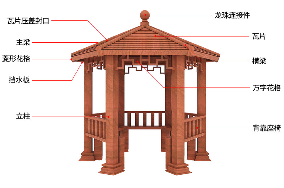 涼亭,傳統結構單體建筑之一。因為造型輕巧,選材不拘,布設靈活而被廣泛應用在園林建筑之中。是人們憑借一定材料建造出來的,而材料的特性,也必然會對建筑的造型風格產生影響。所以,涼亭的造型藝術,也在一定程度上取決于所選用的材料。由于各種材料性能的差異,因此,不同材料建造的涼亭,就各自帶有非常顯著的不同特色。